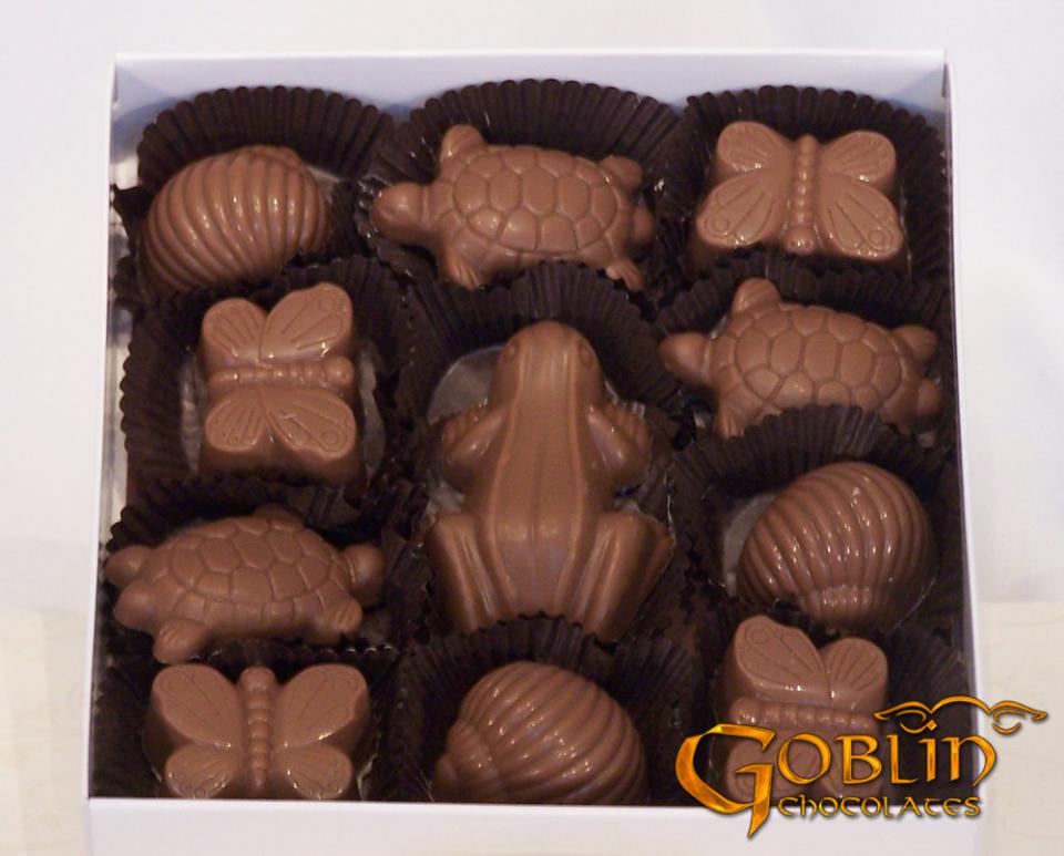 Gooey caramel snails, peanut butterflies, chocolate turtles and a frog.