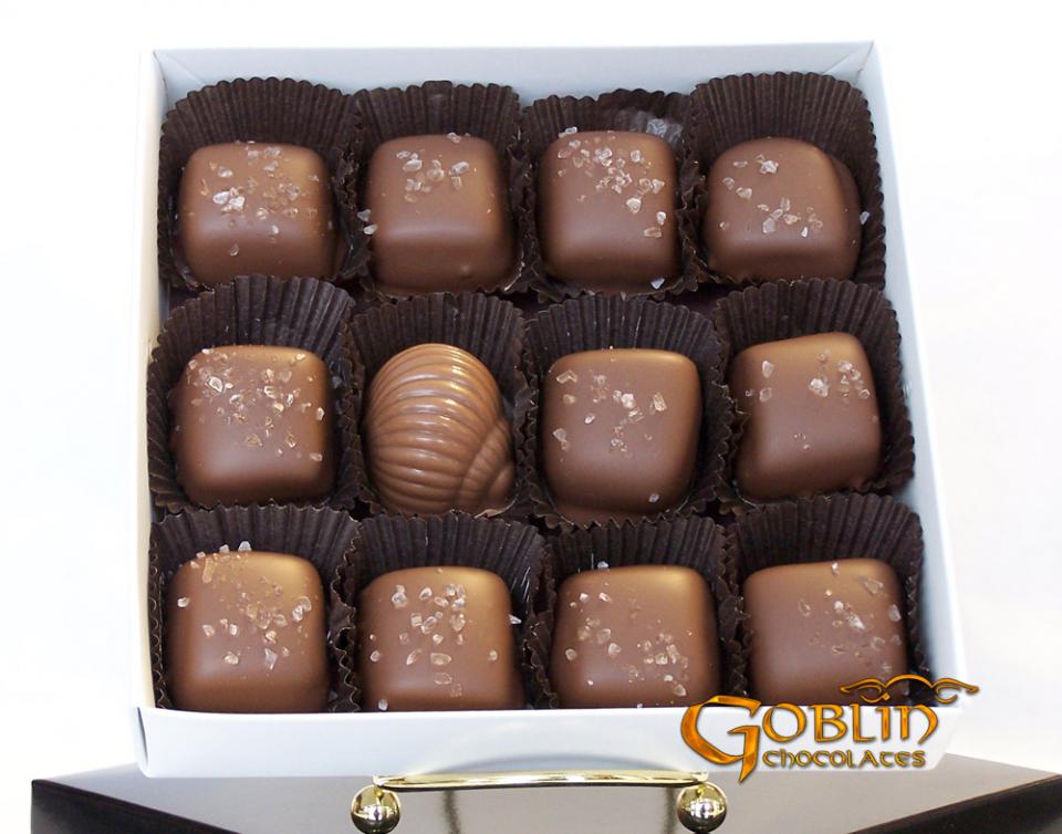Sea Salted Caramels and a Gooey Caramel Snail available in milk chocolate.