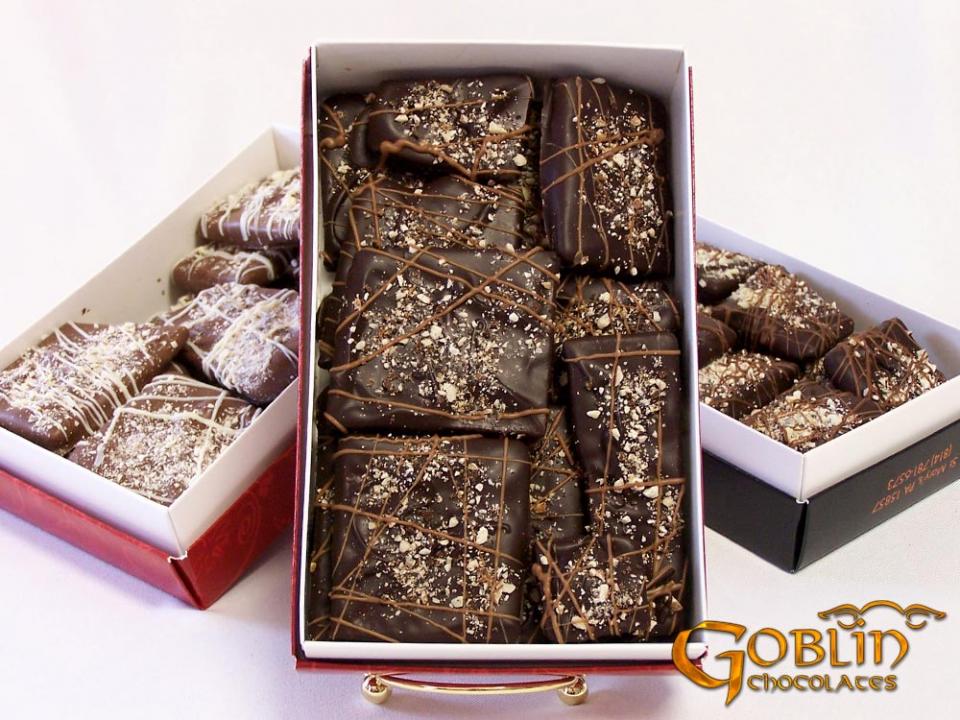The Goblins milk or dark chocolate Almond Bark.